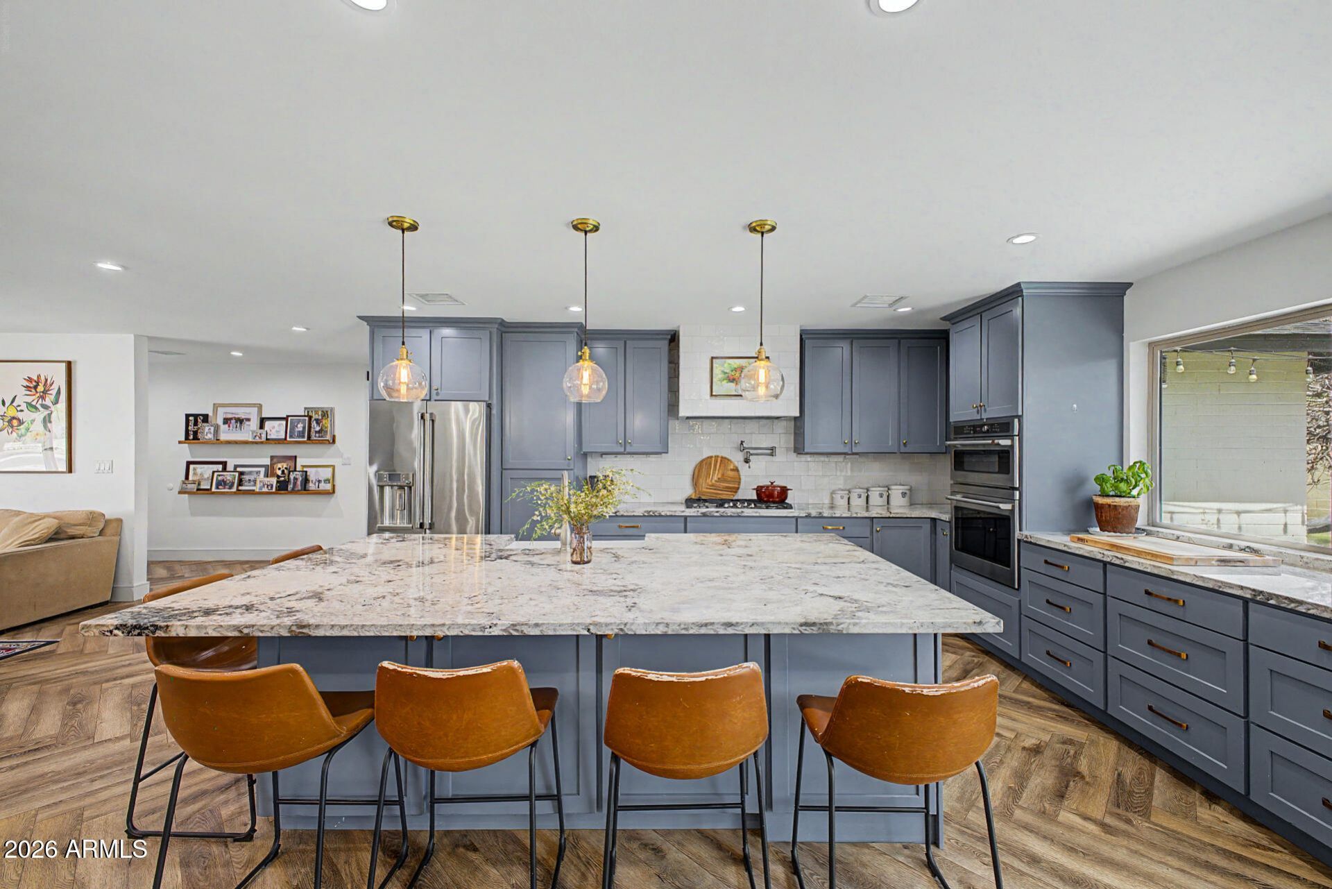 Everything is NEW in this beautifully remodeled 2021 home--taken all the way down to the studs! This light and bright open floor plan features a large, spacious kitchen with GE Café appliances including a gas cooktop, stunning Bluezonite granite countertops, and herringbone LVP flooring throughout the main living areas. Youll love the huge pantry and spacious primary bathroom with dual sinks and an oversized shower. Major upgrades include new AC units and ducting, roof, exterior paint, flooring, and trim--every surface has been updated. The home also offers 8-foot ceilings, pre-wiring for high-speed internet and cameras, and an RV gate for added convenience. Enjoy a grass backyard with irrigation, perfect for relaxing or entertaining.