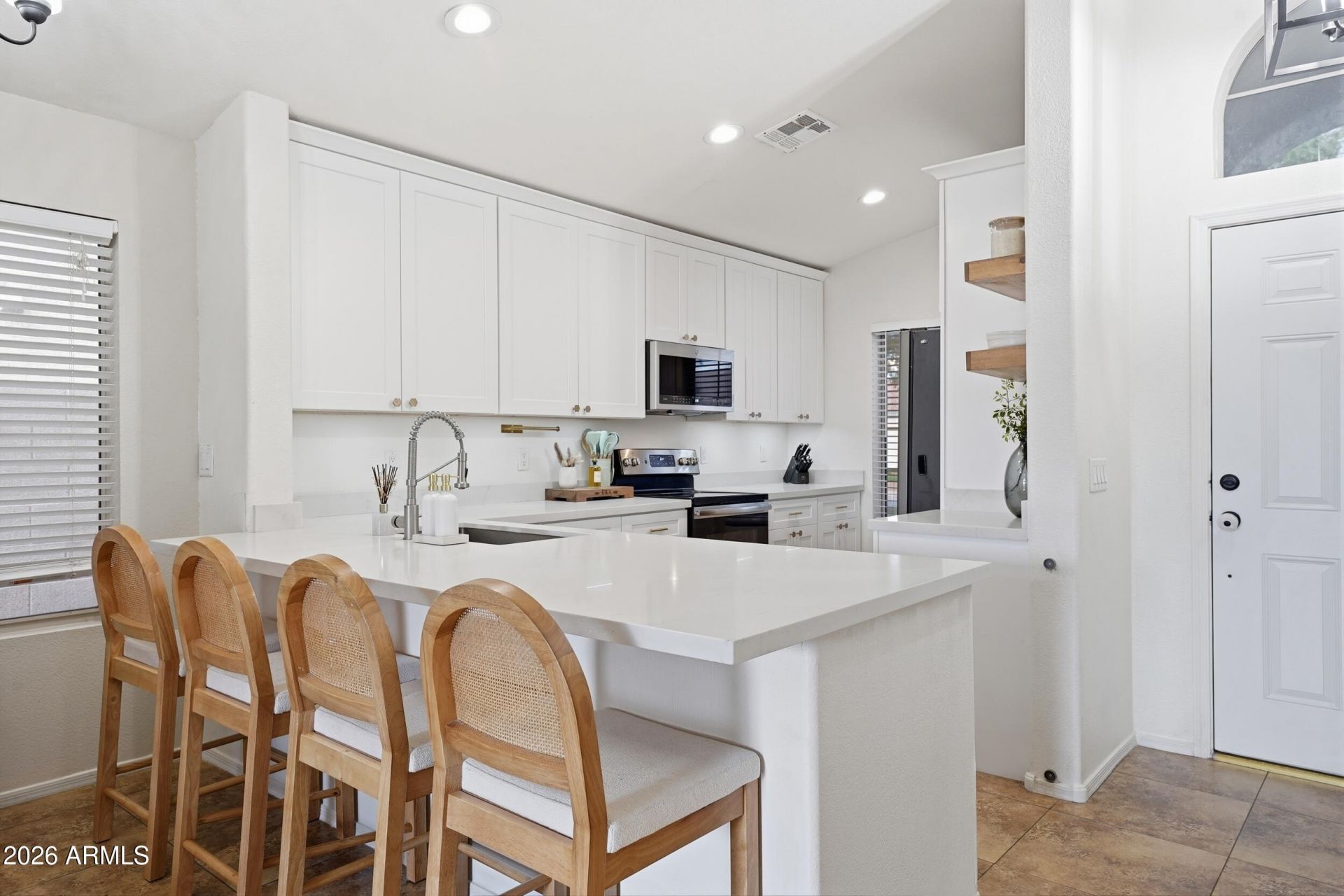 Live the Downtown Gilbert lifestyle--just under three miles away! This beautifully updated home shines with a fully remodeled kitchen featuring 42 soft-close cabinets, quartz counters, an oversized breakfast bar, mini beverage fridge, under-cabinet lighting, farmhouse sink, stainless appliances, and stylish floating shelves. Inside, everything feels fresh with new paint, modern lighting, and updated fans. Outside, enjoy a large green backyard, with a playground only two blocks away--perfect for outdoor fun. And the location? Incredible. Youre minutes from Historic Downtown Gilbert, the iconic 1927 water tower, splash pad, dining hotspots, concerts, plays, and endless entertainment. Plus, youll love the easy access to the 202, US-60, and SanTan Village Mall, all just a short drive away.