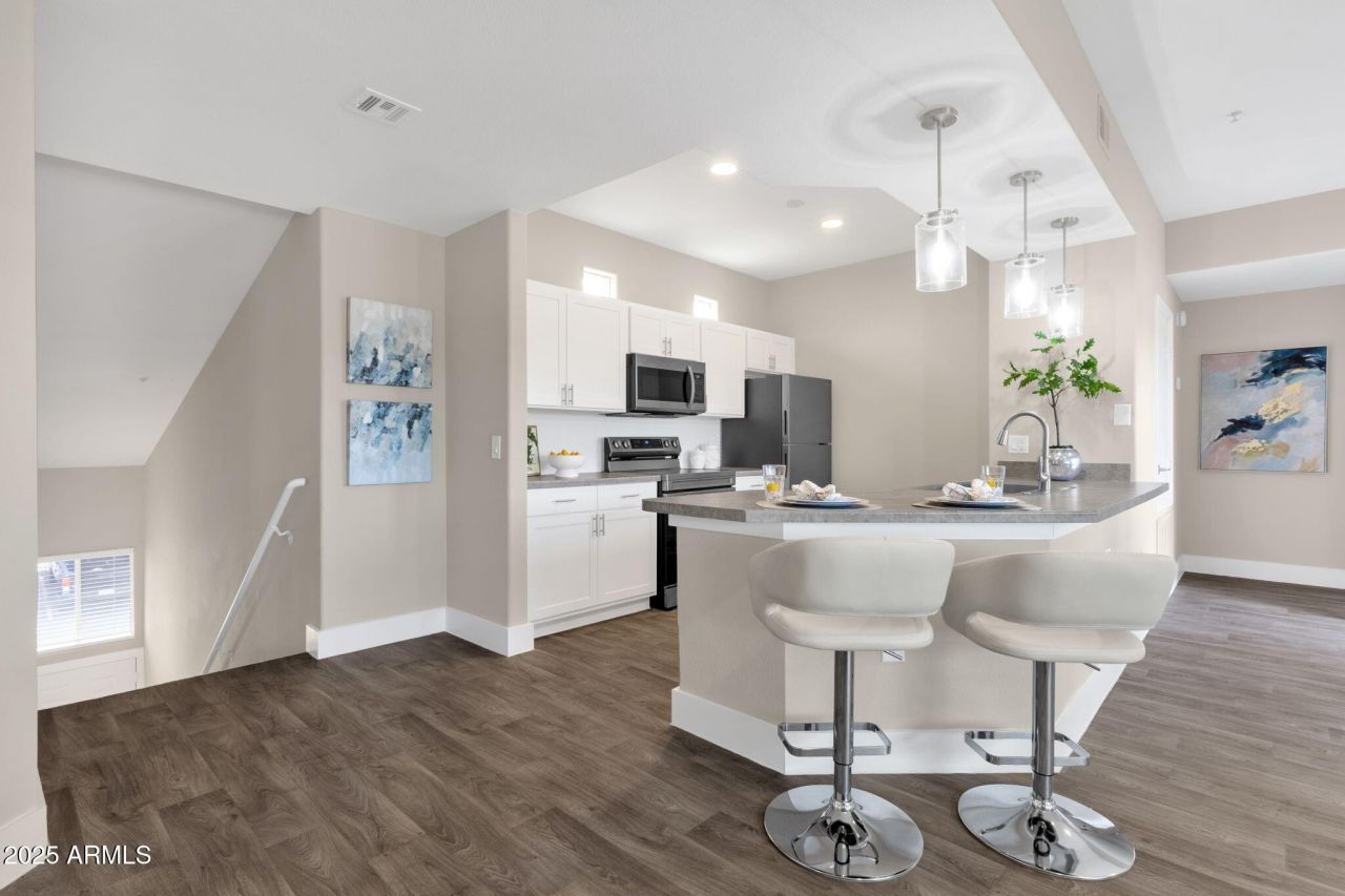 Modern townhome with breathtaking views in Fountain Hills! Nestled against the stunning backdrop of the McDowell Mountains, this beautifully renovated 2-bedroom, 2-bathroom townhome offers the perfect blend of modern comfort and natural beauty. Spanning 1,228 square feet, this open-concept home features 9 ceilings, contemporary finishes, and an inviting living space filled with natural light. The kitchen is a chefs dream with stainless steel appliances, and a stylish breakfast bar - perfect for both casual meals and entertaining. The primary suite provides a peaceful retreat with plush carpeting, ample closet space, and serene mountain views, while the spa-inspired bathrooms feature modern vanities and elegant tile work. Step out onto the private balcony and take in panoramic views of Arizonas iconic Four Peaks, or enjoy the beautifully landscaped outdoor spaces.Residents have access to resort-style amenities, including a sparkling pool, state-of-the-art fitness center, and scenic walking trails. With ample parking, pet-friendly policies, and newly updated facilities, this townhome offers both security and convenience. Ideally located near hiking trails, shopping, and dining, this home is perfect for individuals or couples seeking a stylish desert retreat.