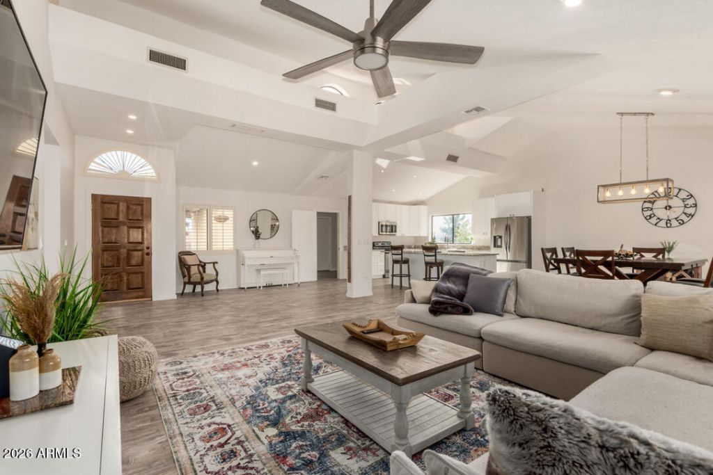 Turnkey Remodel on Elevated Lot with Mountain Views from both the front and back of the home. This beautifully remodeled 3-bedroom, 2-bath residence features 2,170 sq ft of open-concept living with vaulted ceilings, abundant natural light, and luxury plank flooring throughout. The fully renovated 2025 kitchen showcases white cabinetry, granite countertops, and updated appliances, opening seamlessly into the great room and dining area--perfect for entertaining while enjoying the surrounding mountain scenery. Both bathrooms were fully remodeled in 2025 with new fixtures, finishes, and ceramic tile flooring. Major recent upgrades include HVAC (2024), electrical panel (2024), interior paint and doors (2025), LED lighting and ceiling fans (2025), and a laundry and pantry addition (2025).Situated on a spacious 13,748 sq ft elevated lot, the backyard offers a blank canvas to design a resort-style outdoor living space with pool, spa, fire pit, or desert garden retreat.No HOA. No NPOA. Move-in ready with major systems already updated.
