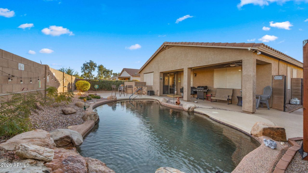 Premium Location, beautifully maintained & upgraded single level home in the highly desirable Mesa Sierra Ranch II community. Perfectly situated on a premium Cul De Sac lot. This 1843 sf, 3 bedrooms, 2 bath features an open floor plan with upgrades throughout. Beautiful kitchen with granite countertops, breakfast bar, custom cabinetry & SS appliance package, opening to the eating area & large family room. Around the corner brings the spacious primary bedroom with en-suite, boasting double sinks, walk-in shower, soaking tub and walk-in closet. Down the hallway you find 2 more large bedrooms and a full bath. A formal dining area and large bonus living room perfect for entertaining. Enjoy beautiful tile & wood flooring throughout, Great curb appeal with fresh landscaping & lighting. MORE The backyard brings a private resort style backyard featuring a covered patio, pebble sheen pool, large patio area and beautiful landscaping with lighting. Plus, a 2-car garage with built in shelving. Amazing location with easy access to restaurants, shopping, recreation, walking and biking, parks, 202 & 60 freeway and much more! Dont miss this ONE! See extensive upgrade list in document section.