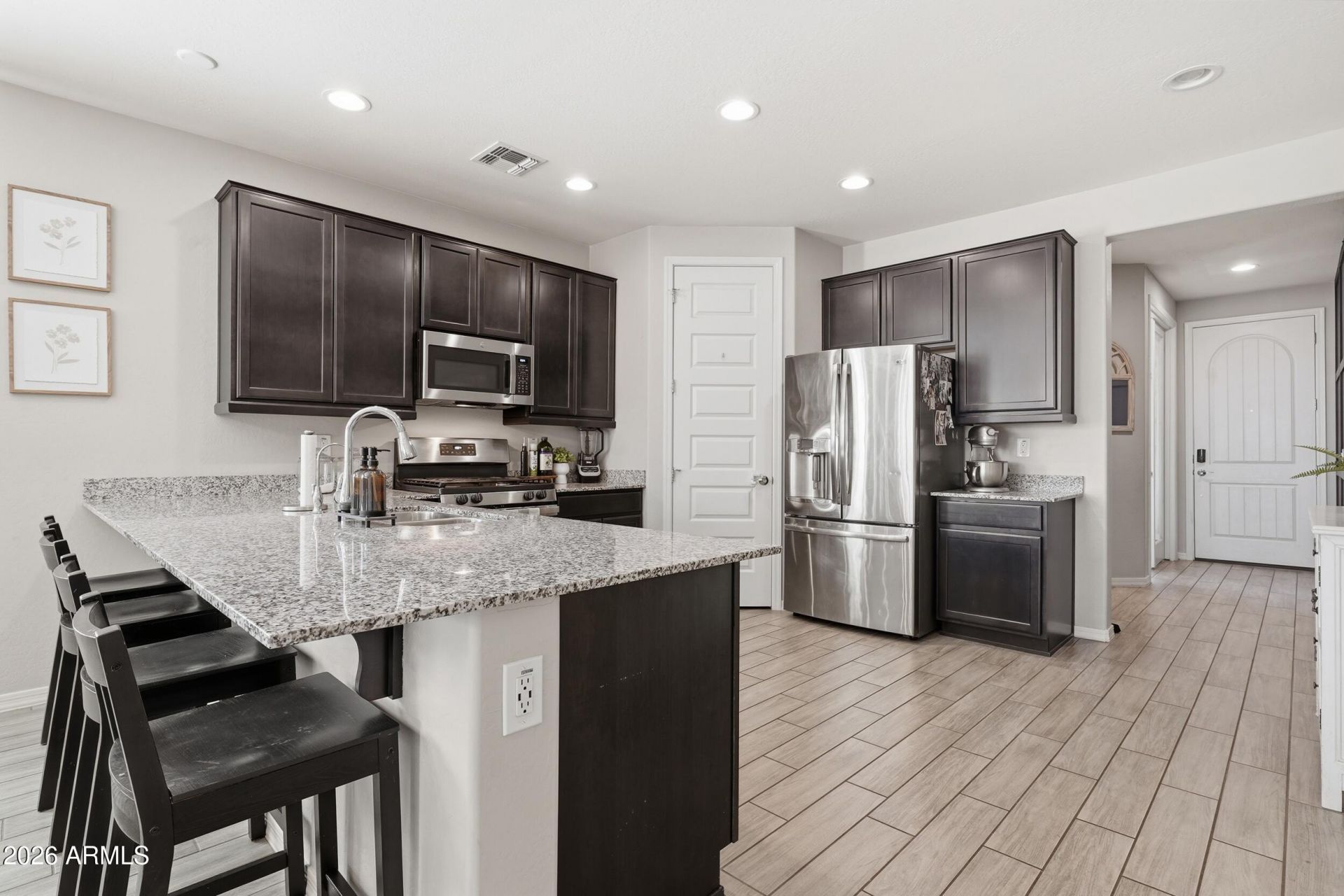 Welcome to this 4 bedroom plus a den (Currently used a bedroom) 2.5 bath home in the heart of Queen Creek! Built in 2020 and being offered by the original owner this Taylor Morrison home is ready to go. The tall ceilings add to the open feel and the kitchen opens to the great room. With granite countertops, stainless steel appliances, gas range and large eat-in area for a big table youll enjoy living here. The primary bedroom is large with room for a king size bed and your furnishings, the bath is as well with double sinks, walk in closet, linen closet, shower and tub. The 3 other bedrooms are well sized and share a full bath. Up front the den has a ½ bath close, the backyard is a nice size as well and parks are nearby. Seller to pay off solar w/acceptable offer.