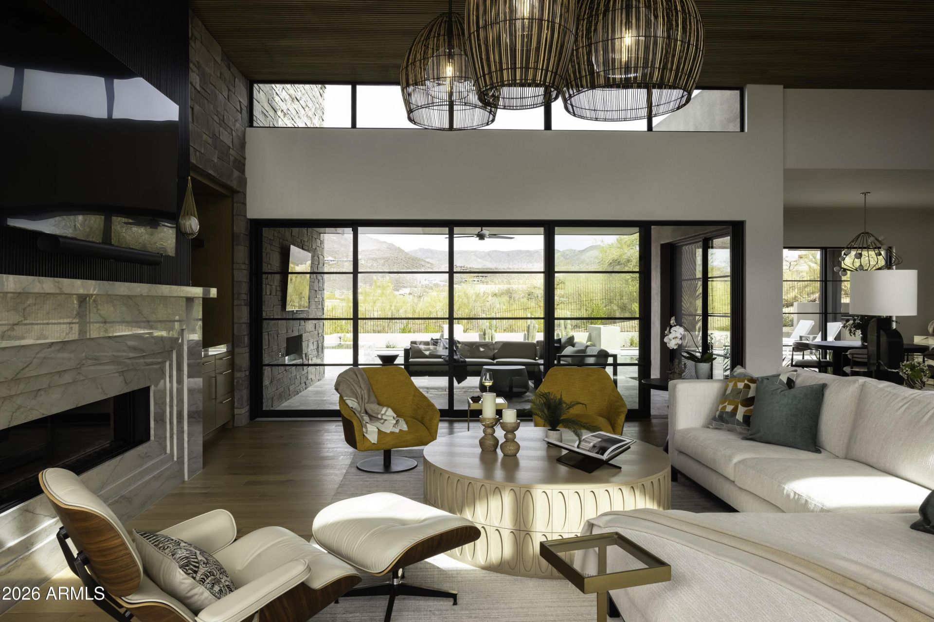 New golf listing in prestigious Desert Mountain--where luxury, design, and breathtaking scenery come together seamlessly. This nearly new, fully furnished, single-level contemporary masterpiece showcases an exceptional great room floor plan, thoughtfully designed for both everyday living and effortless entertaining. A full golf membership available, elevating the Desert Mountain lifestyle experience. From the moment you enter, youre greeted by panoramic desert views stretching across Lone Mountain and glowing sunset horizons. Walls of glass invite the outdoors in, creating a seamless connection to the surrounding natural beauty. At the heart of the home is a stunning chefs kitchen, complemented by a secondary catering kitchen and walk-in pantry featuring. ...extensive custom cabinetry--perfect for hosting on any scale. Step outside to your private resort-style retreat. The expansive patio features a sparkling pool and spa, dramatic water and fire elements, and a covered lanai ideal for BBQs, al fresco dining, and outdoor living with TV. An additional covered lounge area with fireplace and TV provides the perfect setting to unwind--all while taking in Arizonas unforgettable sunsets. The home is richly appointed with upgraded designer finishes, custom lighting, smart home system with motorized shades throughout, solar array, auxiliary batteries and EV charger (details below).A separate two-room attached casita offers ultimate flexibility, complete with its own living area, kitchen, and en-suite bedroom--ideal for guests or extended stays. The professionally designed landscape enhances both privacy and curb appeal, while custom furnishings are included to create an immediate, elegant setting. This is Desert Mountain living at its finest--refined, relaxed, and absolutely unforgettable.Solar info (owned):60 Enphase. panel array (24 kW)2 Enphase batteriesEV Charger info:High speed Chargepoint EV charger (tesla and CCS)