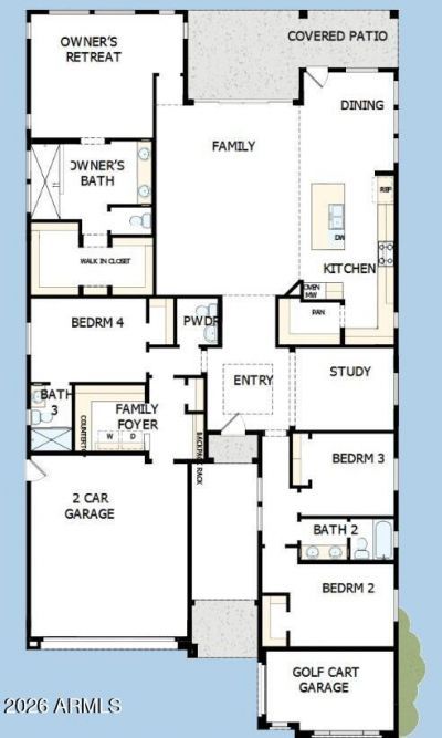 BRAND NEW single level, 4 bed, 3.5 bath w/study and 2 car PLUS golf cart garage; 10 ceilings and 8 doors, large energy efficient windows with 12 sliding glass door in family room exiting to large outdoor living area; modern warm chefs kitchen with 2-tone cabinets, tons of storage plus walk-in pantry, quartz tops, white tiled backsplash, huge island and stainless GE appliances including gas cooktop; added upper and lower cabinets in utility room w/added sink; spa-like owners bath with floor to ceiling tiled super shower, 2 sinks and His/Her walk-in closets; GATED COMMUNITY WITH MOUNTAIN VIEWS; 2X6 CONSRUCTION AND EXTENSIVE NEW HOME WARRANTY.