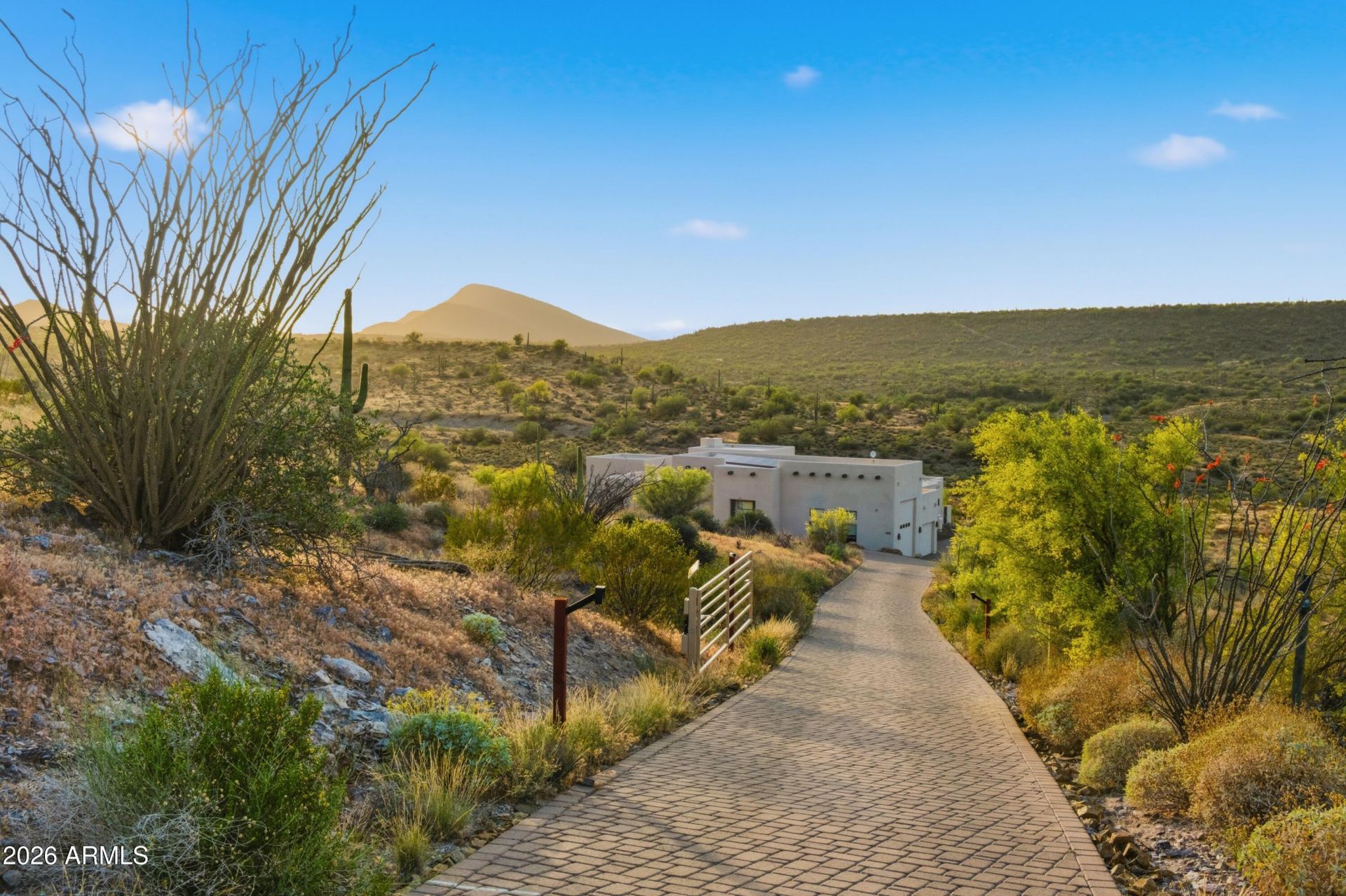 Experience ultimate privacy on 25 acres bordering state land with direct trail access and breathtaking, unobstructed desert views. Perfect for someone seeking space and desert lifestyle. Built for it all, bring your toys and horses! An over height 56 x 20 RV garage and oversized 3 car garage (2,266 sqft) for 7+ vehicles or more. A gated entrance with motor court provides easy access, turnaround and ample guest parking.This 4,213 sqft custom residence plus separate casita, offers 4 beds, 4.5 baths, a dedicated office. No interior steps. Enjoy a resort style retreat with a heated pool and spa set against sweeping desert views. Upgraded highlights include owned solar, a private well, new exterior paint, paver-ed driveway. Serene and secluded yet just 10 mins to downtown Cave Creek.