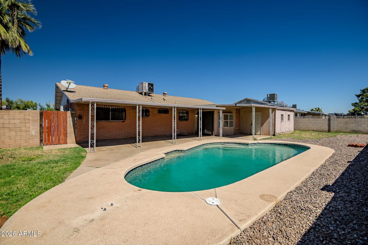 Here is a fantastic opportunity to own a comfortable and well-equipped detached home in a desirable location NO HOA!This charming property features 3 spacious bedrooms and 2 full bathrooms, offering a functional layout perfect for both everyday living and entertaining. Stay cool year-round with the added benefit of two AC split units, providing efficient and customizable climate control throughout the home.Step outside and enjoy your own private retreat with a sparkling pool, ideal for relaxing, hosting gatherings, or soaking up the Arizona sunshine.Whether youre looking for a primary residence or an investment opportunity, this home combines comfort, convenience, and great outdoor living as well as close proximity to I-10, 202 and 101 freeways! Dont miss your chance to make