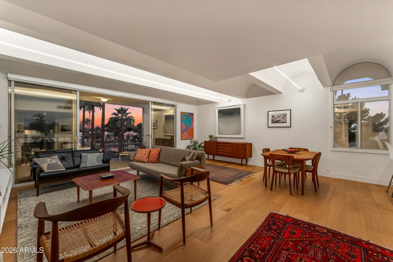 Olympus Condominiums - Third-floor residence w/ signature barrel-vaulted ceilings + expansive views that include Camelback Mountain. Iconic mid-century modern landmark designed in 1964 by renowned Phoenix architect Robert L. Starkovich. Central Corridor concrete architecture w/ dramatic arches and signature breeze-block detailing. Historic Landmark designation approved 2024. Owner-occupant tax benefit. HOA improvements: roofs 2023; A/C & heating piping 2024. Amenities include underground garage parking, storage, mid-century clubhouse, pool, BBQ areas and landscaped greenbelts/courtyards. HOA includes heating/cooling, cable+internet, water/sewer/trash and common area maintenance. Steps to Murphy Bridle Path; minutes to Uptown dining, coffee, shopping and hiking at Piestewa Peak & N Mountain Olympus Condominiums is one of Phoenixs most architecturally distinctive residential communities -- a boutique mid-century modern landmark designed in 1964 by renowned Phoenix architect Robert L. Starkovich. Starkovich helped shape much of Phoenixs mid-century architectural landscape, and Olympus remains one of the Central Corridors most recognizable residential buildings.The buildings bold architectural identity is defined by sculptural concrete construction, dramatic arch forms, and signature breeze-block detailing, elements that reflect the design principles of mid-century modern architecture throughout the Southwest. The repeating arches and open breezeways create a strong architectural rhythm that has made Olympus an enduring architectural presence along Central Avenue for more than sixty years.In 2024 Olympus received official Historic Landmark designation, recognizing the buildings architectural significance within Phoenixs built environment and helping preserve its distinctive character for future generations. For owner-occupied residences, this designation may also provide a potential property tax advantage through the Maricopa County historic preservation program (buyers should verify eligibility and potential savings with the County Assessor).The community maintains an intimate residential scale with 36 residences, offering a boutique living environment within one of Phoenixs most desirable urban corridors.Despite its boutique scale, Olympus provides a thoughtfully designed collection of amenities that enhance everyday living while complementing the buildings architectural character. Residents enjoy secure underground garage parking, private storage areas, a mid-century clubhouse, a community pool, outdoor BBQ and gathering areas, and landscaped greenbelts and courtyard spaces that create a relaxed and private residential setting.The homeowners association has demonstrated thoughtful stewardship of the property through a series of capital improvements supporting both the longevity and continued appeal of the building. Recent work includes new roofs completed in 2023 and replacement of the buildings A/C and heating piping system in 2024, strengthening essential building infrastructure. A project to update the communitys distinctive wrap-around roof-deck patio areas is also underway, with completion targeted for fall of this year.Monthly HOA dues are comprehensive and include a wide range of utilities and services designed to simplify ownership. Included within the dues are heating and cooling, cable television, internet service, water, sewer, trash service, and common area maintenance, reducing the number of individual utilities owners typically manage separately.The location of O