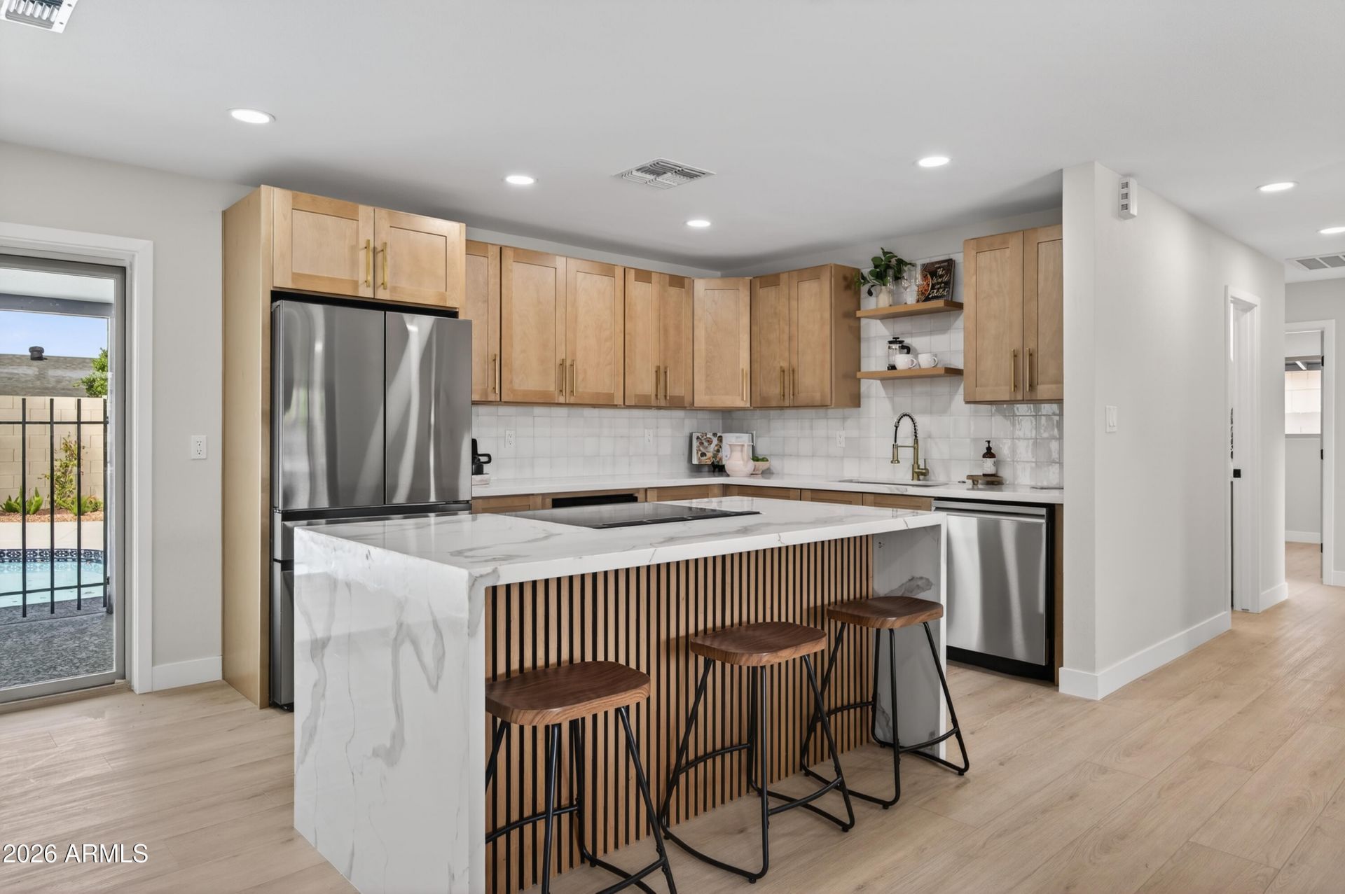 Beautifully remodeled 4-bedroom, 2-bath home in a prime Scottsdale location, offering the perfect blend of style and functionality. The open-concept layout creates a seamless flow between living, dining, and kitchen spaces. Ideal for both everyday living and entertaining. Step outside to your private backyard oasis featuring a sparkling pool, perfect for relaxing or hosting gatherings. A standout feature is the detached casita, providing versatile space for a home office, gym, guest quarters, or creative studio. Thoughtfully updated throughout, this home delivers modern comfort, flexibility, and indoor-outdoor living at its best.
